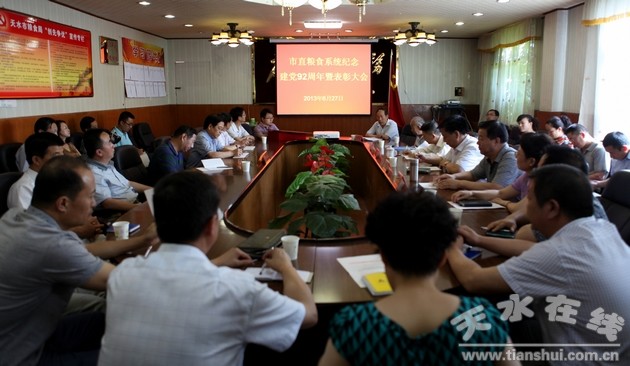 6月27日,市直粮食系统召开纪念建党92周年暨表彰大会,邀请市委组织部远程教育办主任刘宇出席并作了指导讲话,局机关全体党员、局直各单位党员代表和离退休党员代表共40余人参加。