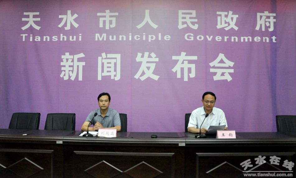 7月26日下午,天水市人民政府举行抗灾救灾工作新闻发布会,天水市人民政府副市长王钧就天水市抗灾救灾工作情况向媒体记者介绍情况。中共天水市委外宣办主任、天水市人民政府新闻办公室主任刘越高主持新闻发布会。