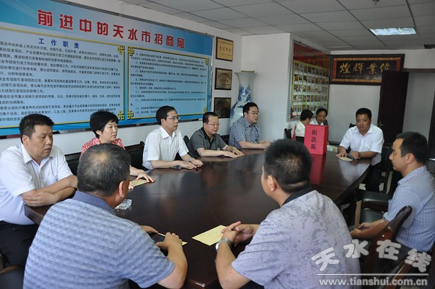 7月30日下午,天水市招商局机关干部职工为秦州区娘娘坝灾区捐款6400元,向受灾群众积极献爱心。之前,该局机关女职工还通过妇联向灾区捐款700元。