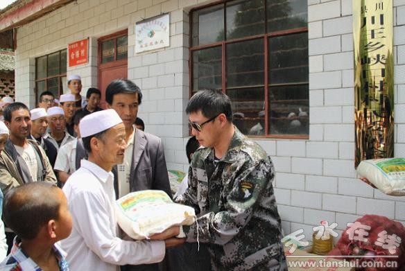 我市受多次强降雨引发山体滑坡、泥石流灾害和7·22岷县漳县地震波及的影响,造成人员伤亡,房屋倒塌,农田被淹,道路、河堤损毁,电力、通讯中断,受灾十分严重。海南爱心人士闻讯后,充分发扬“一方有难、八方支援”的中华民族传统美德,海南阳光义工团、海南未名公社、海南省工商联青委会等爱心团体的代表魏晓龙、邓宇泽、刘建飞等一行10人,从岷县灾区赶赴我市援助受灾群众。他们到达天水后不顾旅途劳顿,立即采购灾民急需物品,赶赴秦州区娘娘坝灾区及镇政府、太京中学安置点,清水县陇东乡梁庄村、丰台村、朱河村,张家川县川王乡峡口村等,查看受灾情况,慰问受灾群众,送去了大米、食用油、蔬菜、方便面、洗漱用具等生活急需品及常用药品,共计价值6万余元。这是首批将生活必需品送达张家川、清水县偏远灾区的民间慈善组织。
