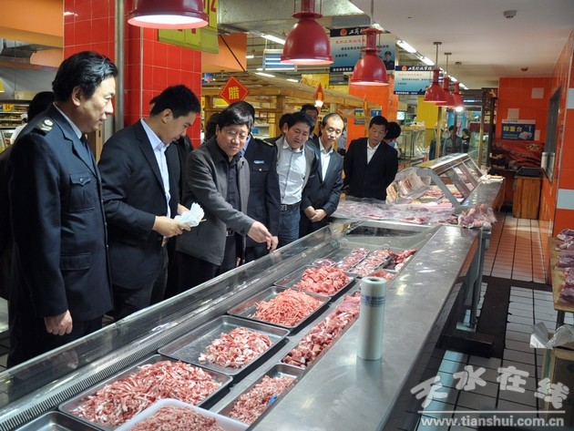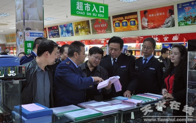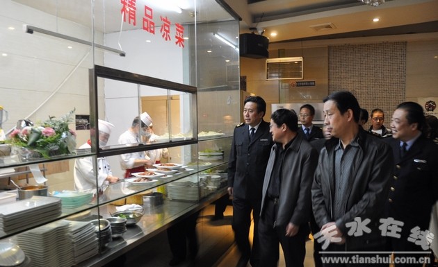 国庆将至,为确保节日期间食品卫生安全,保障人民群众身体健康和生命安全,让人民过一个欢乐、和谐、团圆的节日。9月30日上午,由天水市食安委办、市质监局、市工商局、市药监局、市卫生局卫生监督所等相关部门组成的食品安全卫生联合检查组对我市各大酒店、食品生产及销售等场所进行了一次节前食品安全卫生大检查。