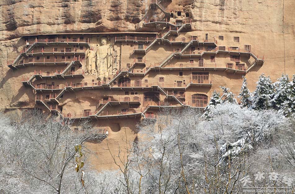 (麦积山落下2013年的第一场冬雪 拍摄时间:11月24日) |