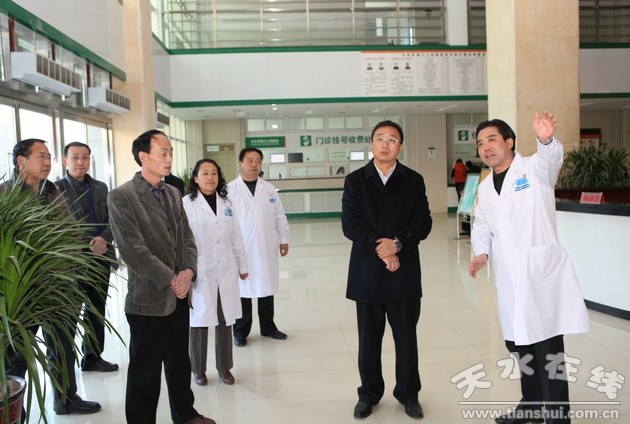 12月10日下午,天水市政府副市长杨小天在市政府办公室副主任王小春、市卫生局副局长刘和平等的陪同下,对天水市第三人民医院进行了调研。