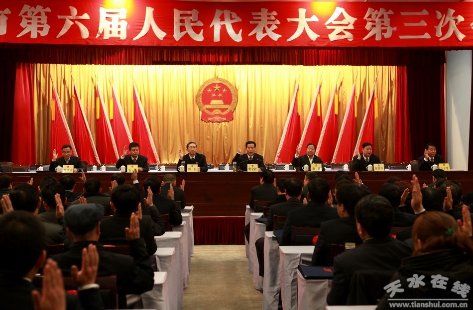 12月27日下午,天水市第六届人民代表大会第三次会议举行预备会议。会议由市人大常委会主任柴金祥主持。