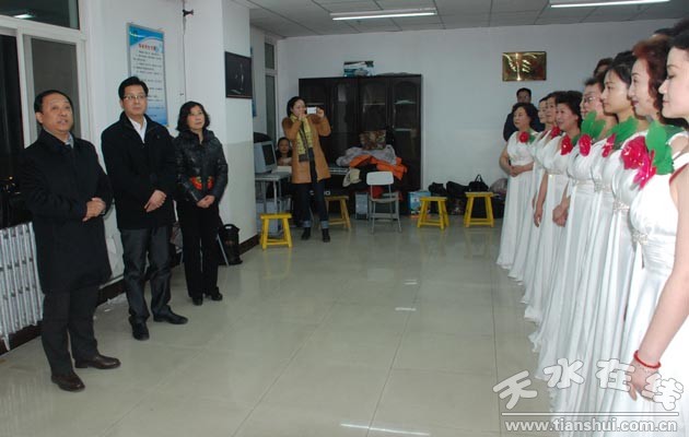 排练间隙,市职工合唱团团长吕晓莉告诉记者,这次受中国合唱协会、中国音协合唱联盟推荐,台北爱乐基金会的邀请,作为西北唯一一支合唱团前往台湾参加新年音乐会的演出,市委、市政府给了很大支持,这次也是天水职工合唱团第一次代表大陆在台北演出,为了发挥最高的水平,队员们半年来加班加点精心排练了《大漠之夜》、《花儿随想》、《鸿雁》、《月亮代表我的心》等四首曲目。吕晓莉说:“市上还准备了《天水市非物质文化遗产名录图典》、《走进天水》图书影像资料,我们将作为礼品送给台湾各界人士,借此机会更好地宣传天水的历史文化,让更多的人了解羲皇故里,来天水做客”。
