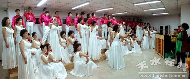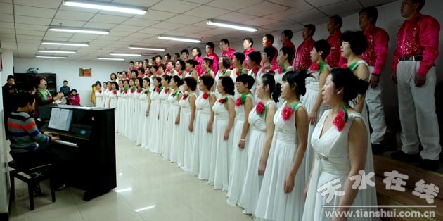 “……春去秋来你穿过金色的岁月,迎着曙光你不停进取不停奔波,月色朦胧星光闪烁……”1月10日晚8时,从天水市青少年活动中心传来阵阵悠扬的歌声,排练室里灯火通明,市职工合唱团的80多位队员穿着演出服,精神饱满,正在为1月15日在台北举办的艺术中国2014“听,天使在歌唱”两岸新年合唱音乐会做最后的联排。