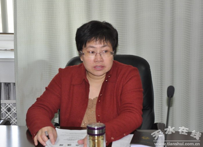 (天水市纪委召开全体干部职工会议,李美华主持会议并讲话。)