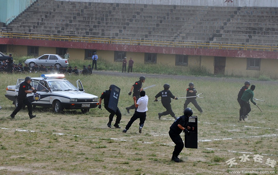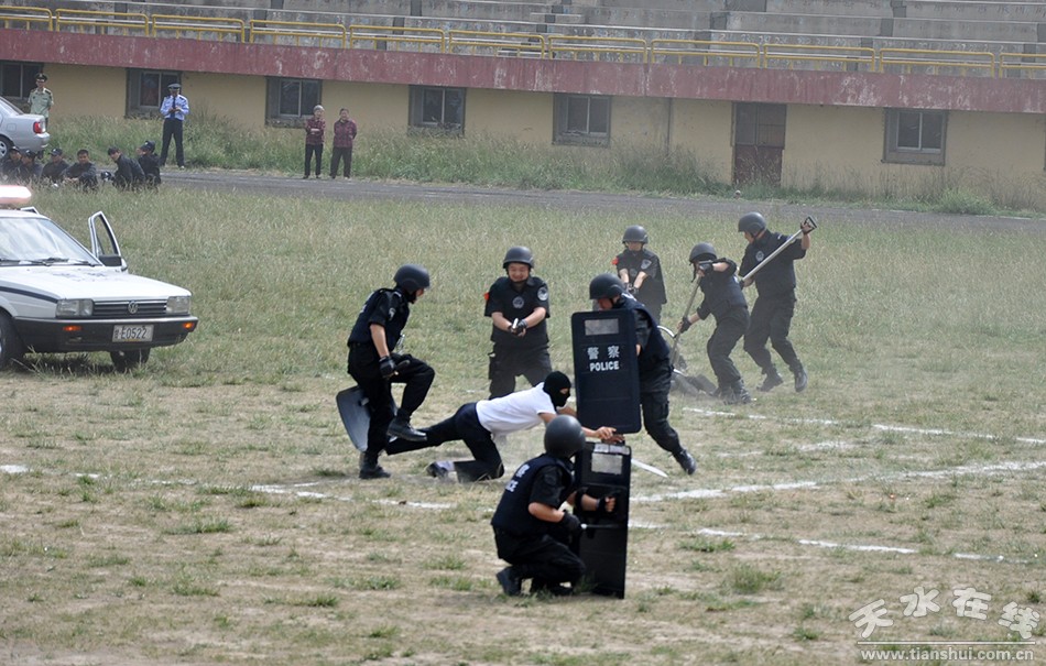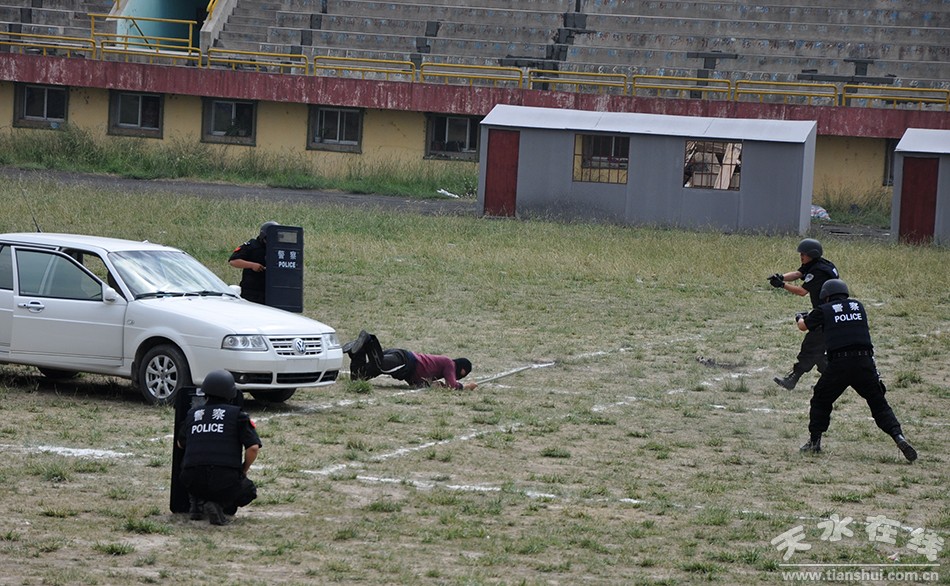 (秦安县公安局进行对暴力恐怖分子的查缉、堵截和抓捕演练)