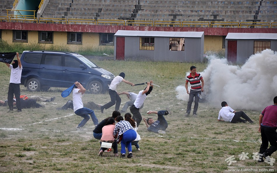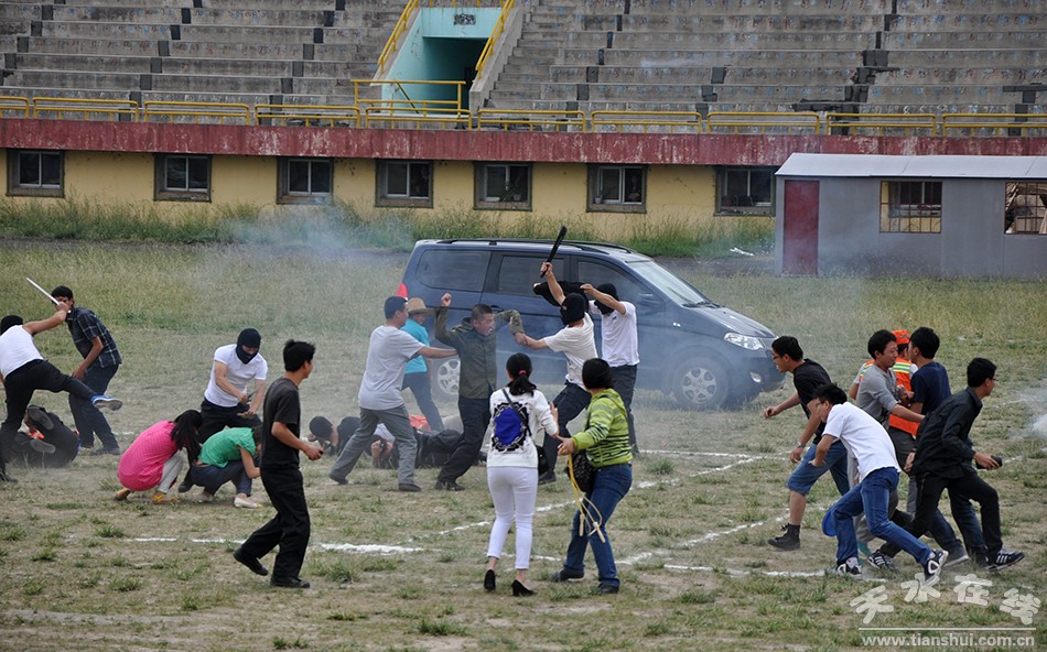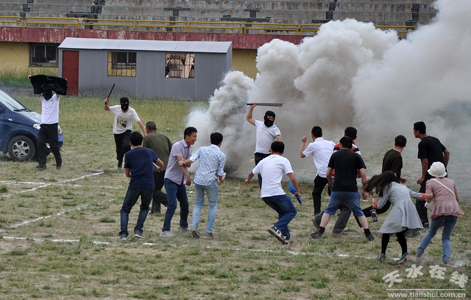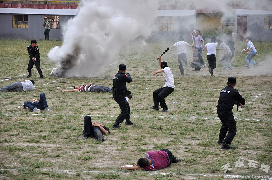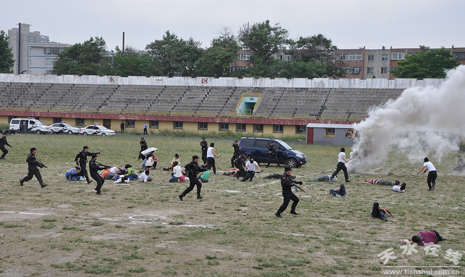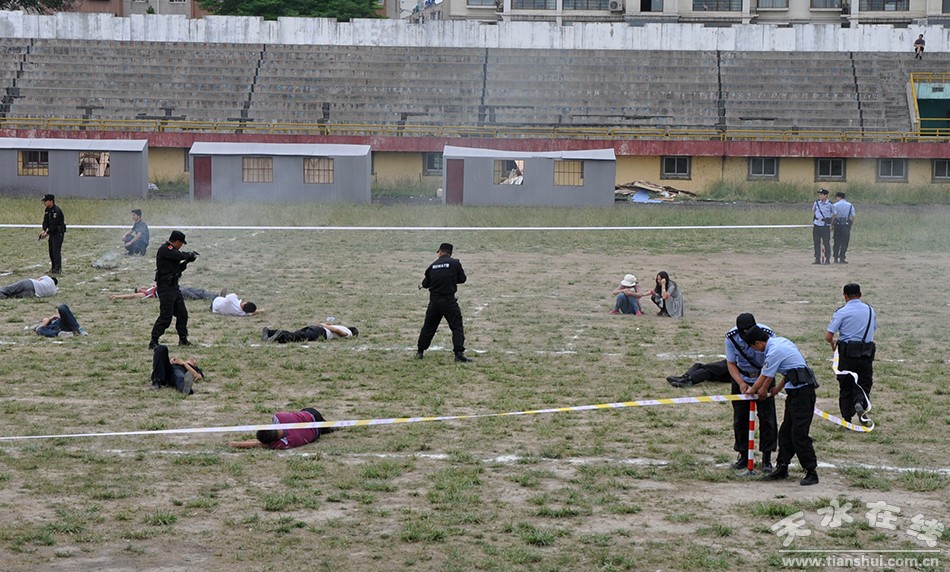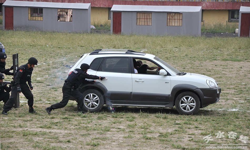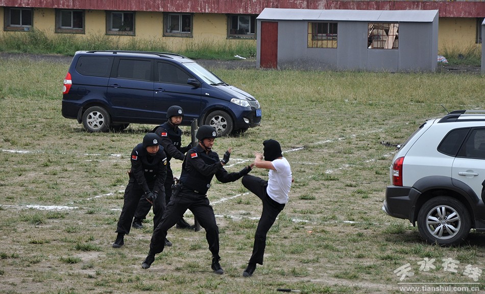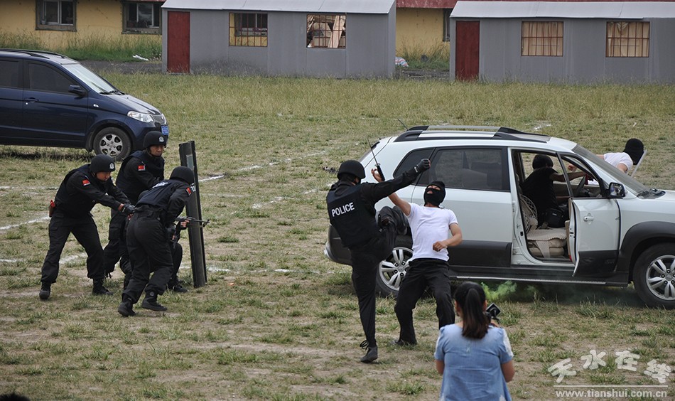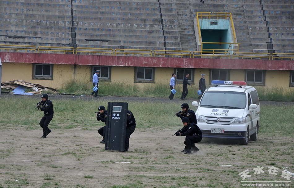 (秦州公安分局进行对恐怖分子的处置演练) |