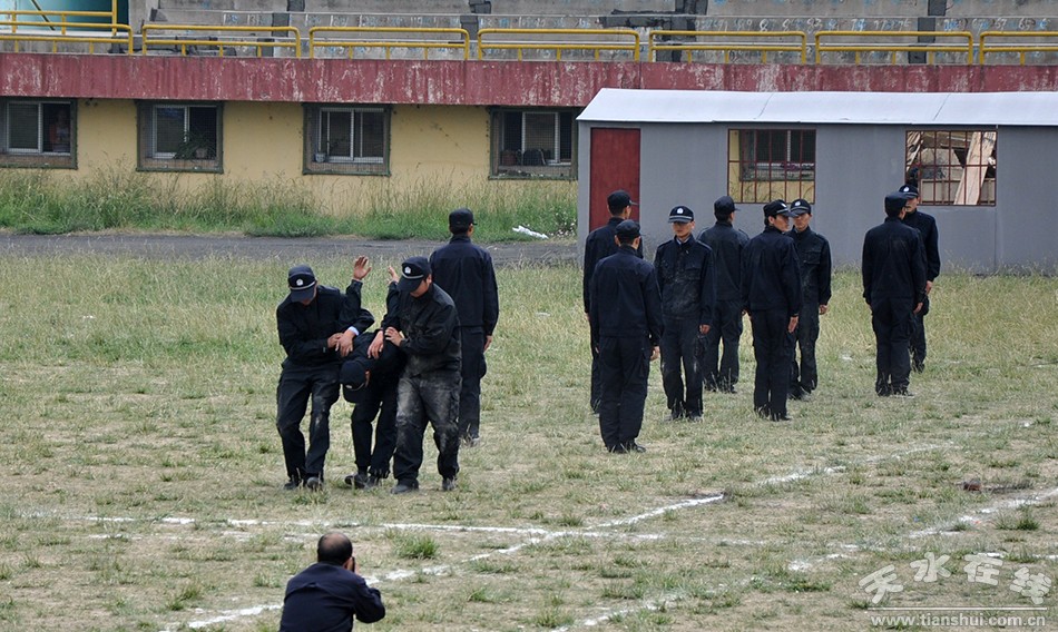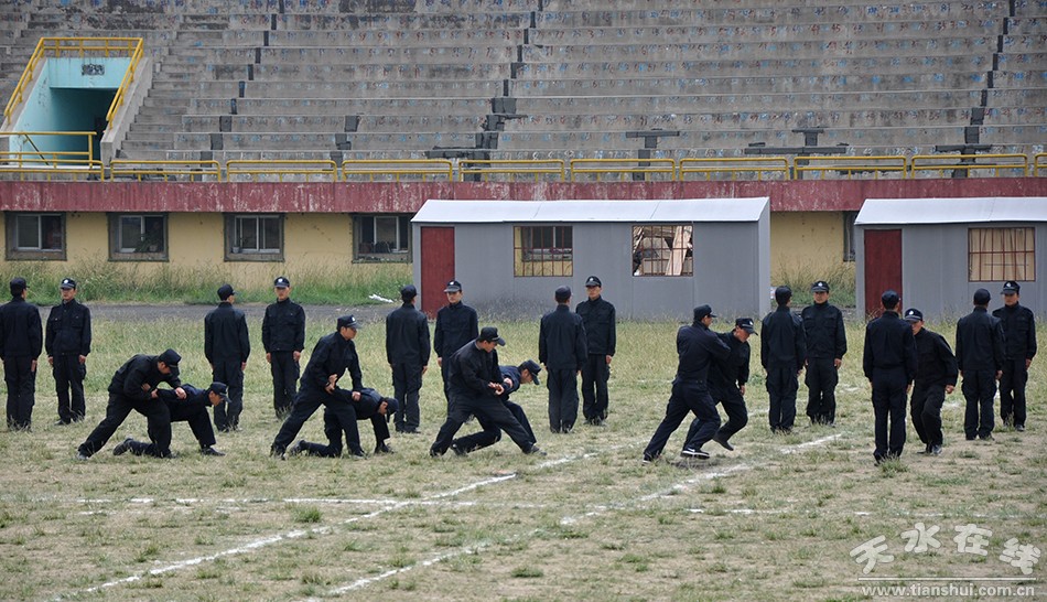 (清水县公安局处突队员进行 一对一、多对一抓捕演练)