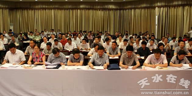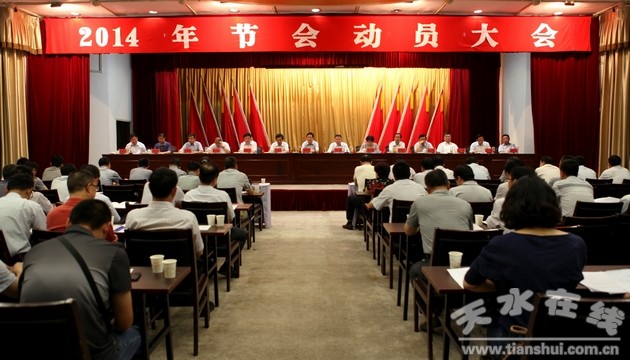 6月19日,天水市2014年节会动员大会在天水迎宾馆召开。市委书记、节会组委会名誉主任王锐出席会议并作动员讲话。他强调,各级各部门要进一步增强大局意识和责任意识,按照今年节会“突出主题,提高质量,扩大影响”和“隆重、节俭、实效”的要求,通力协作,密切配合,查漏补缺,认真抓好节会各项筹备工作,努力把本届节会办成一次高水平的文化旅游盛会。