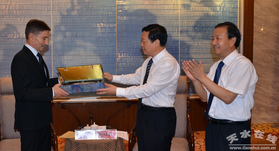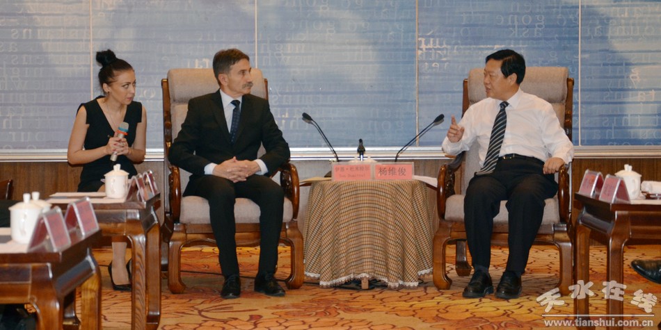 杜米特尔对天水市政府的真诚邀请和热情接待表示感谢。他说,甘肃省与阿尔巴县建立友好省县关系已经10年。这次很荣幸接受刘伟平省长的邀请参加第20届兰洽会和中国—中亚合作对话会,这也是我第一次访华,第一次来甘肃、来天水访问。天水深厚的历史文化和丰富的旅游资源给我留下了很深的印象。我们都是发展中国家,有着共同的情感纽带,交流合作的潜力巨大,特别是在农业方面有很多的相似性。我们希望天水市的领导有机会到阿尔巴县去访问考察,进一步加强交流合作,加深感情。