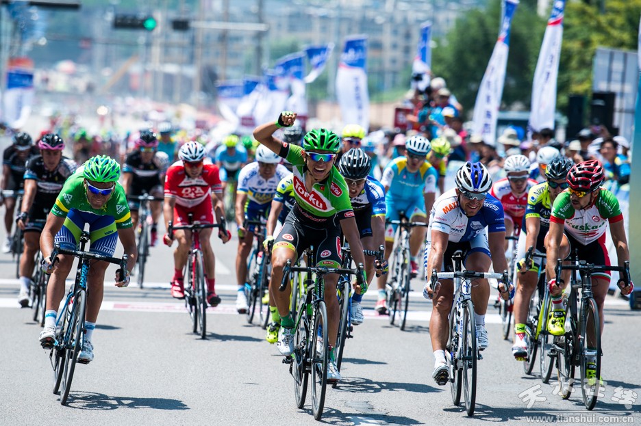 7月15日上午,第十三届环青海湖国际公路自行车赛第九赛段(天水绕圈赛)在天水主城区隆重举行。