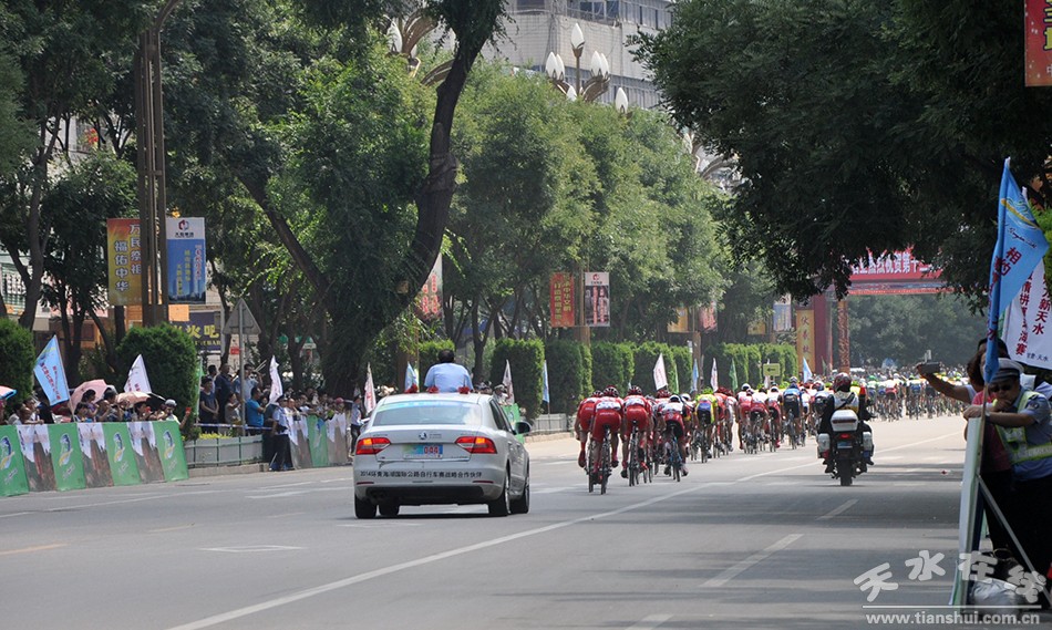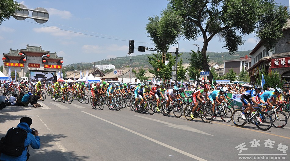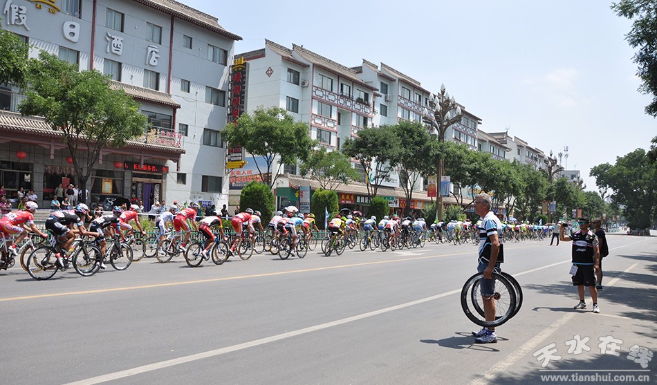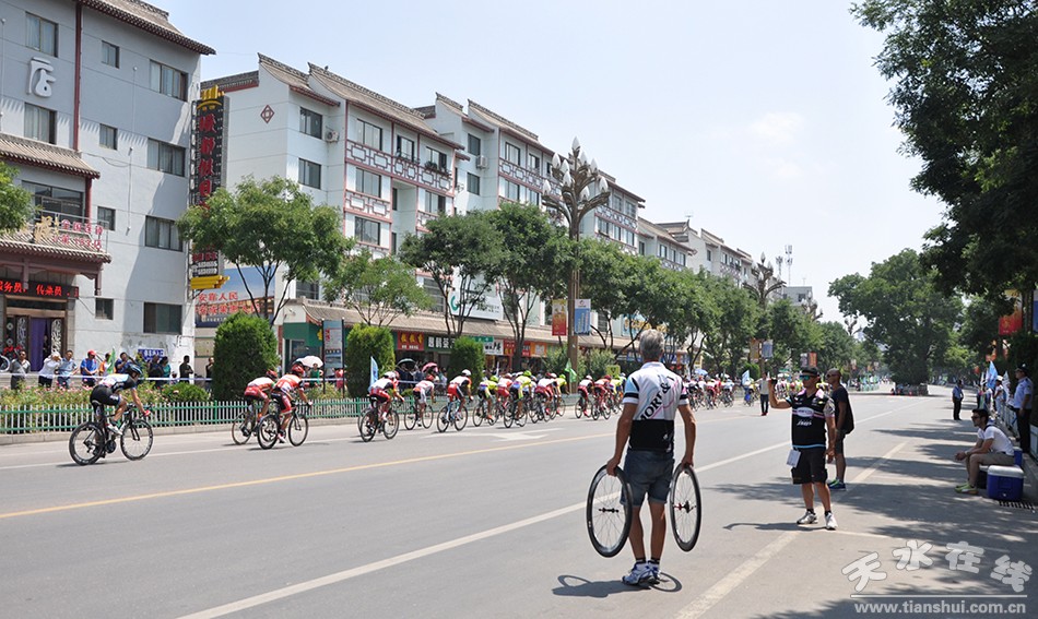 7月15日上午,第十三届环青海湖国际公路自行车赛第九赛段(天水绕圈赛)在天水主城区隆重举行。
