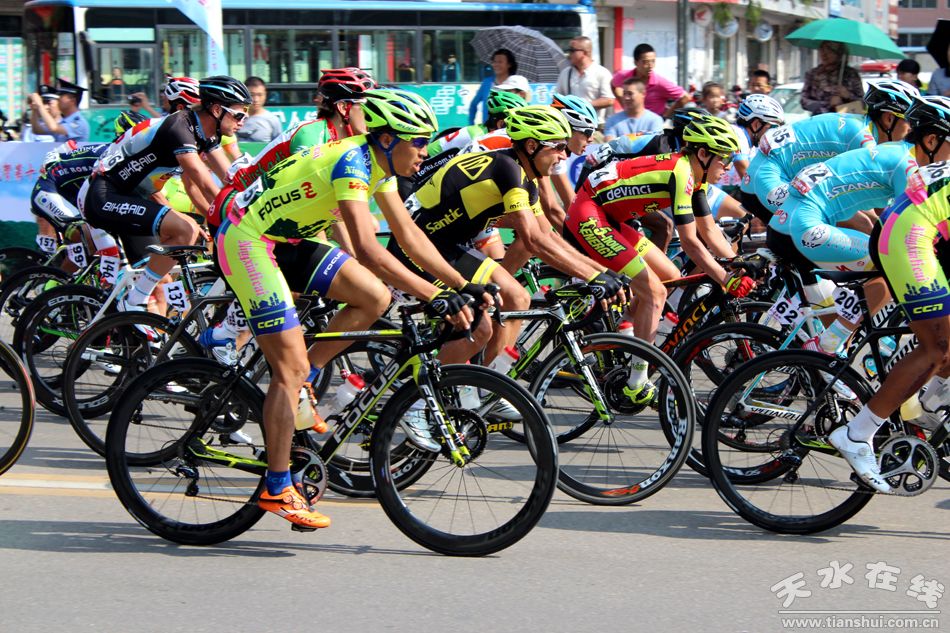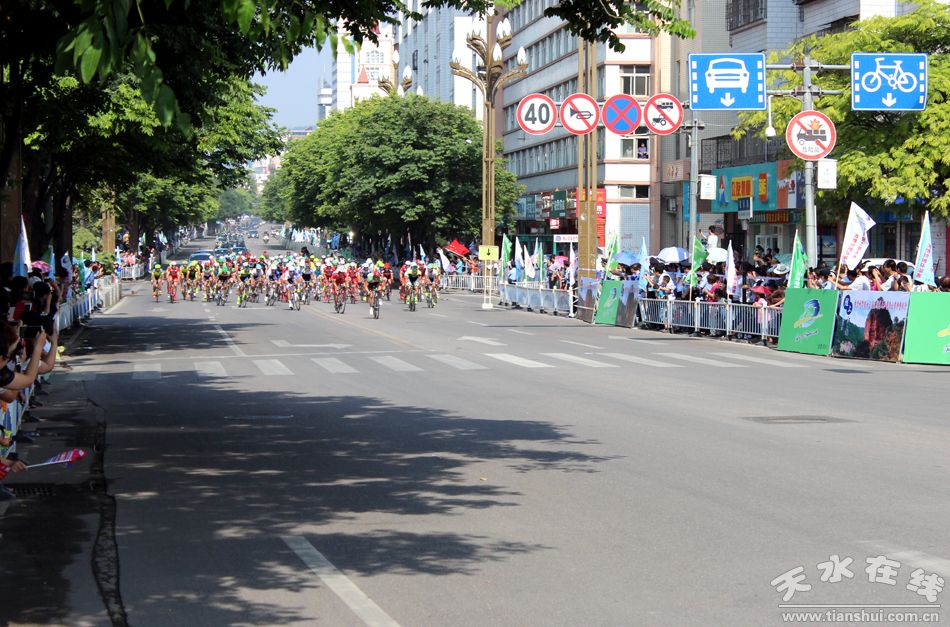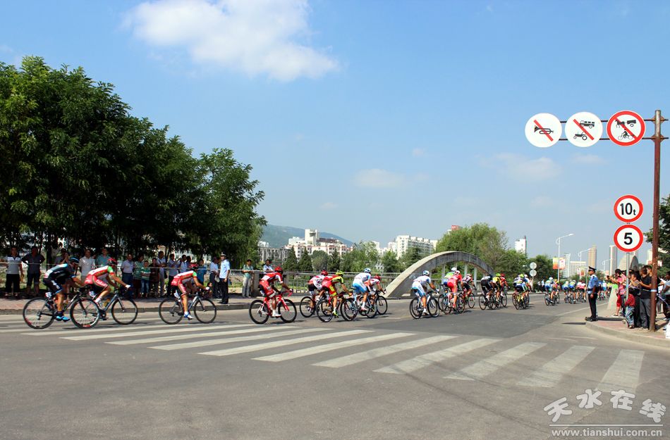 (7月15日上午,第十三届环青海湖国际公路自行车赛第九赛段(天水绕圈赛)在天水主城区隆重举行。) |