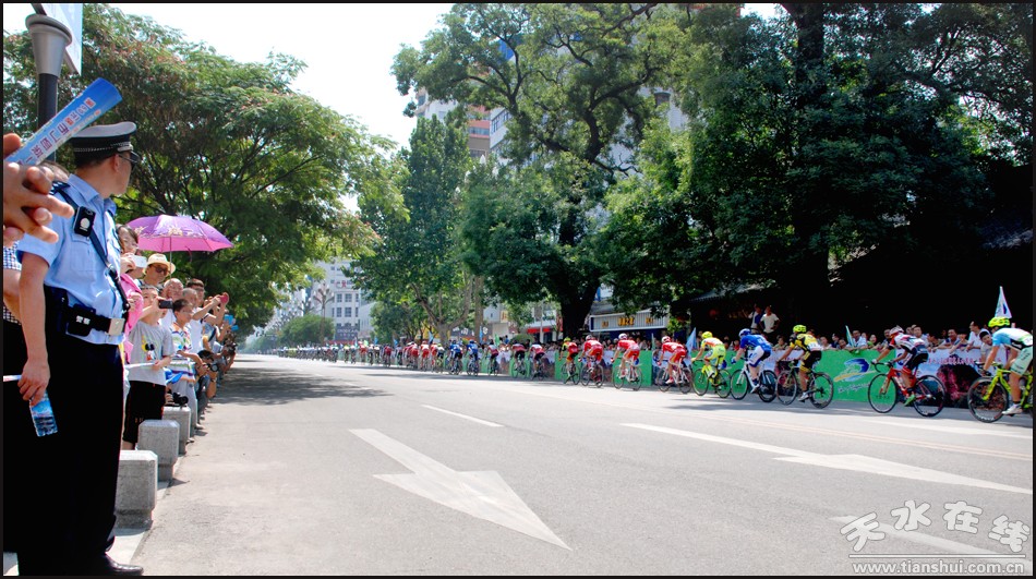 7月15日上午,第十三届环青海湖国际公路自行车赛第九赛段(天水绕圈赛)在天水主城区隆重举行。