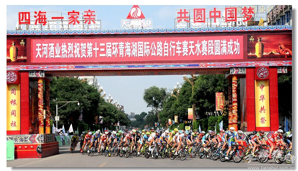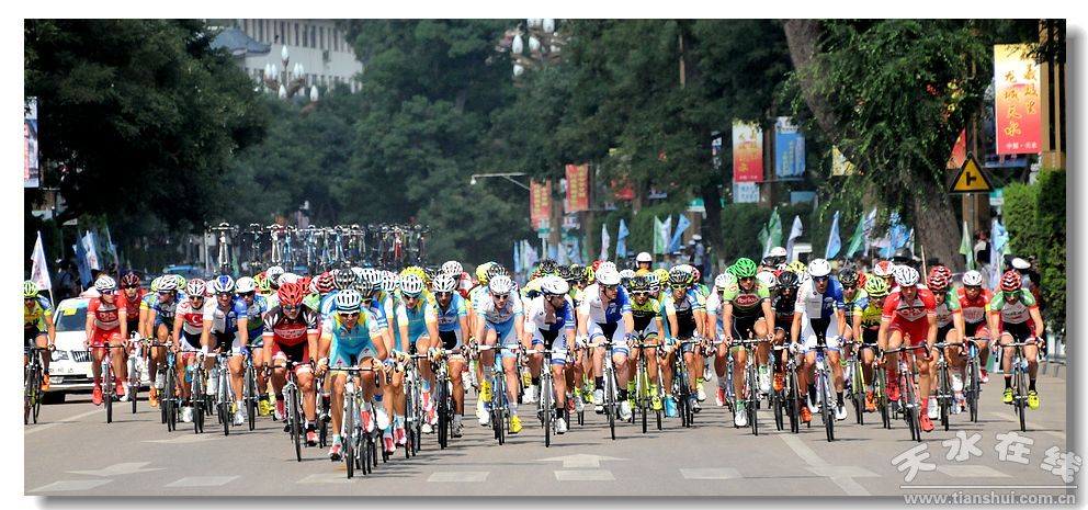 (7月15日上午,第十三届环青海湖国际公路自行车赛第九赛段(天水绕圈赛)在天水主城区隆重举行。) |