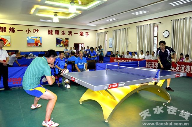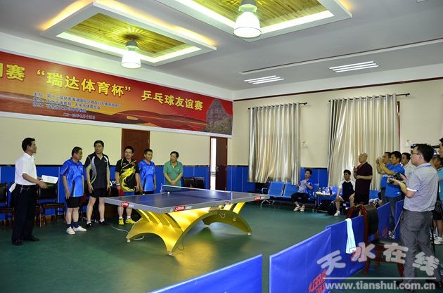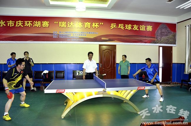 7月15日下午,在备受全巿人民关注的第十三届环湖赛天水赛段城巿绕圈赛正在我巿火热举行时,作为天水巿环湖赛系列活动之一的天水巿庆环湖赛瑞达体育杯乓乓球友谊赛也在天水公路管理局隆重举行。天水巿人大常委会主任柴金祥与央视著名记者李武军参加了开赛仪式并为比赛开球。