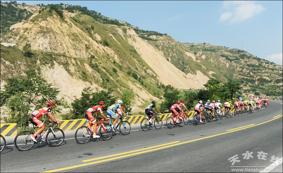(图为选手在第十三届环湖赛第十赛段麦积区赛段骑行)