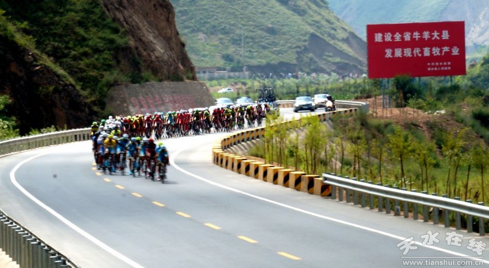 (第十三届环青海湖国际公路自行车赛清水赛段经杜川新村路段 杨景泰 摄)