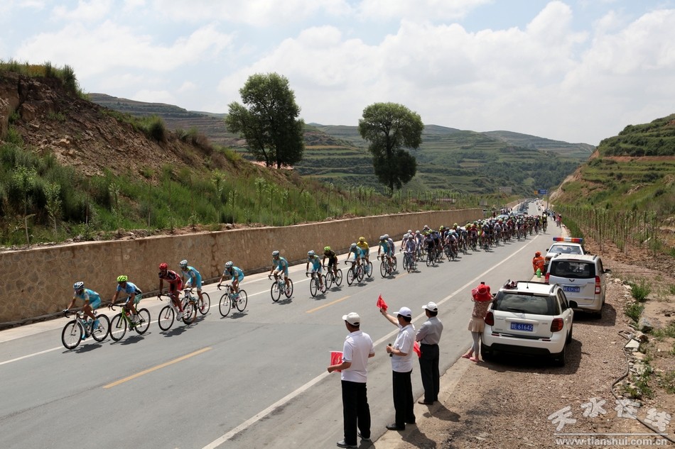 (图为选手在第十三届环湖赛第十赛段张家川赛段骑行)