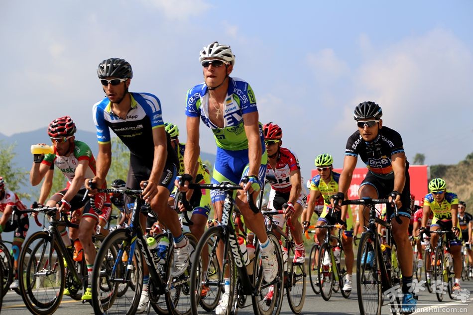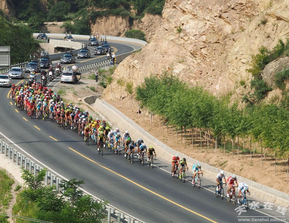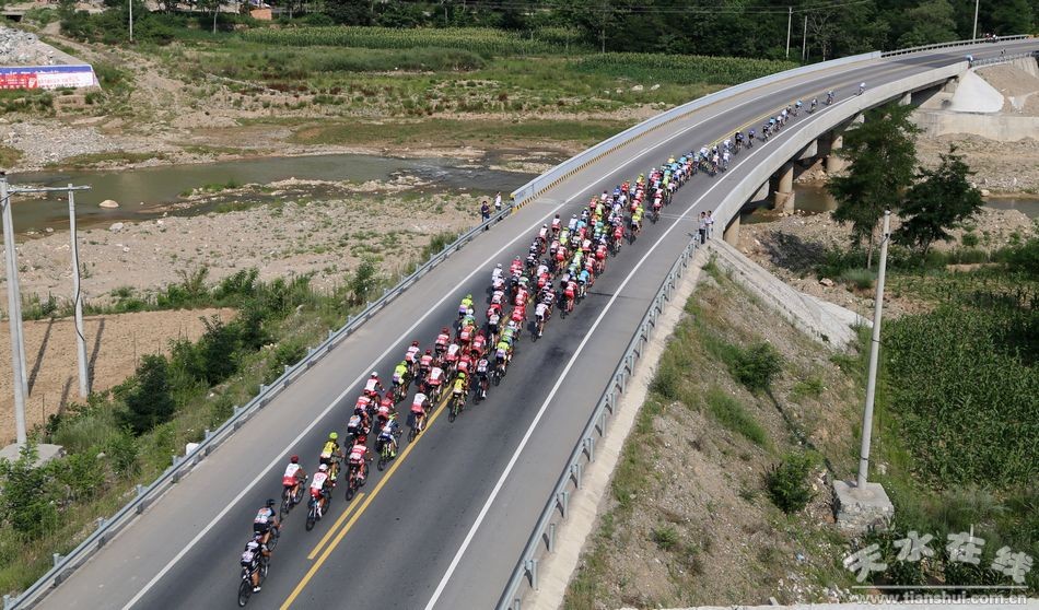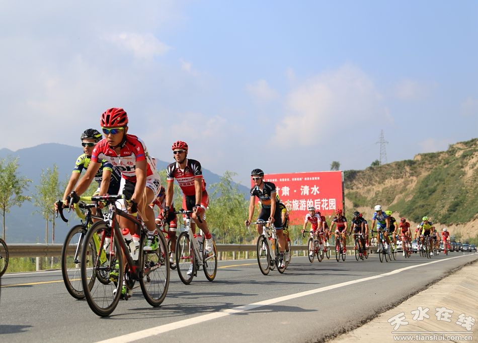 (第十三届环青海湖国际公路自行车赛清水赛段经黄门乡政府路段 张奋明 摄)