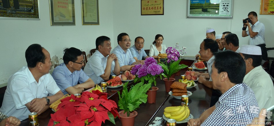 7月29日是穆斯林群众的传统节日开斋节,在穆斯林群众的传统节日开斋节来临之际,7月23日,天水市委常委、统战部部长蒲军、市人大常委会副主任黄孝荣代表市四大组织前往秦安县、麦积区、清水县,看望慰问了穆斯林群众,为他们送去慰问金和慰问品,并祝愿广大穆斯林群众度过一个祥和、美好的节日。