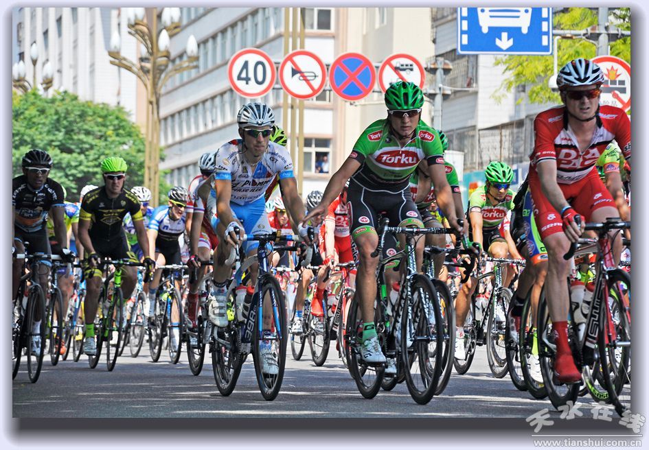 第十三届“天佑德青稞酒杯”环青海湖国际公路自行车赛第九赛段天水绕圈赛7月15日在天水主城区进行,来自世界五大洲22支参赛队伍的198名运动员参加了角逐。 (摄影:月下凤影 )