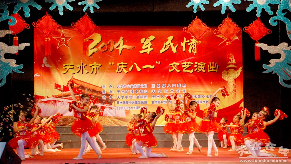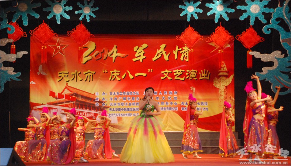 8月1日,2014年天水市“军民情”庆八一文艺演出在天水市文化馆举行。本次活动由天水市公安消防支队、秦州区玉泉镇人民政府主办,天水广播电视台、天水市文化馆承办。
