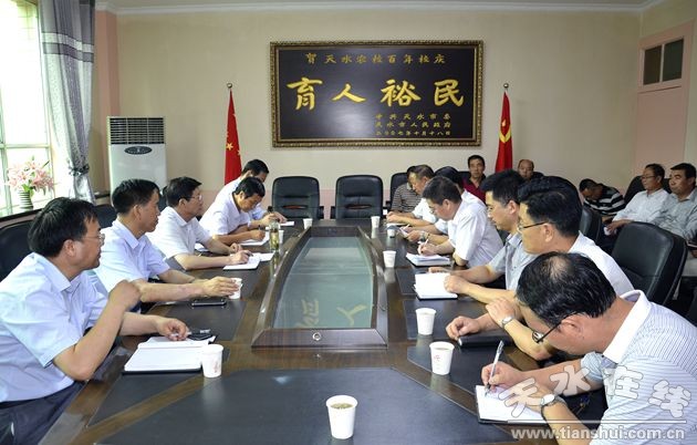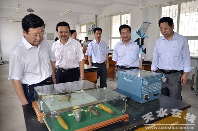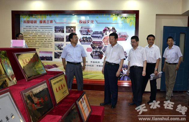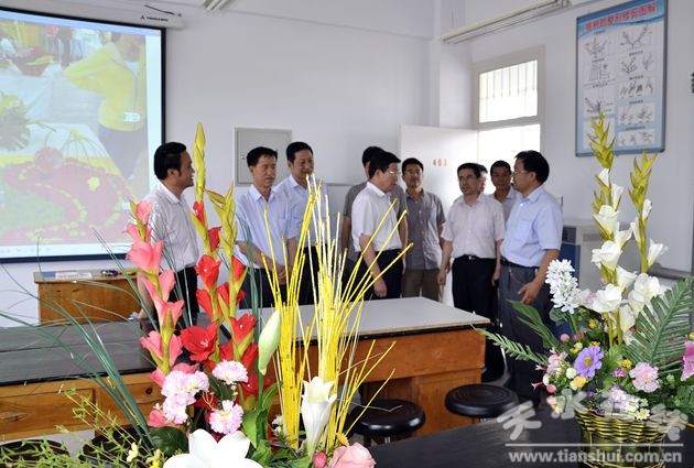 8月20日,天水市委副书记、市政协主席宋尚有带领市教育局和市农业局相关负责人深入天水农校调研时要求,天水农校要抢抓机遇,认真贯彻落实全国教育工作会议精神和国家教育规划纲要,努力在教育资源整合 、基础能力建设、农业科技培训、国家示范校创建、教学质量提高等方面取得新进展、新突破,着力解决学校发展瓶颈,推动学校跨越式科学发展。