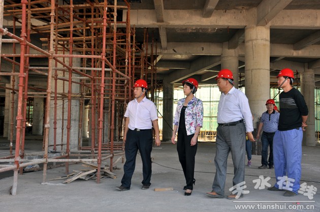 当天,温利平一行实地查看了天水会展中心、天水文化艺术馆及3号、4号商业馆,详细了解了工程建设进展情况,并听取了相关情况的汇报。