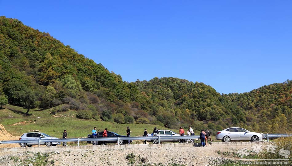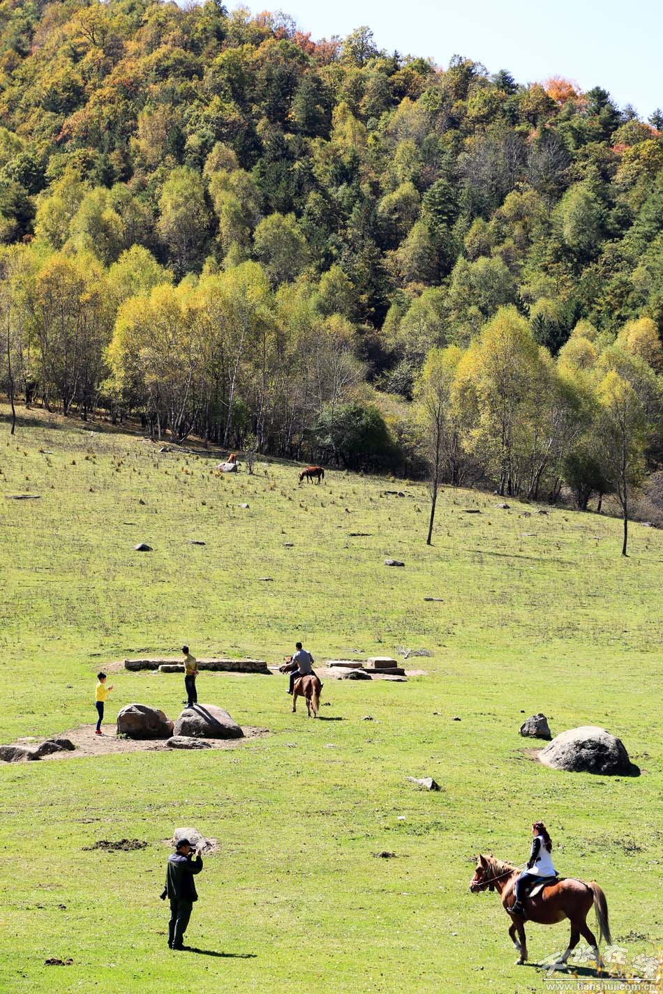 (图为游客在关山牧场游玩 天水在线摄于10月5日)