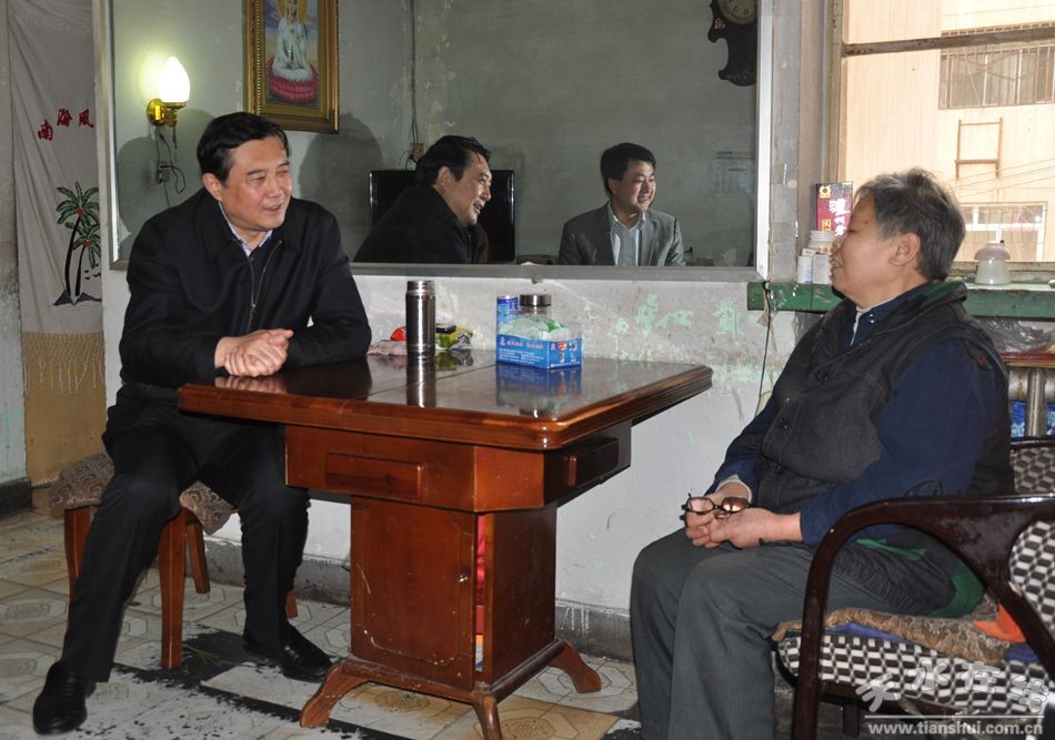 (天水市委常委、政法委书记赵卫东深入秦州区大城街道光明巷社区,带头开展全市政法干警的“百日大走访”活动。)