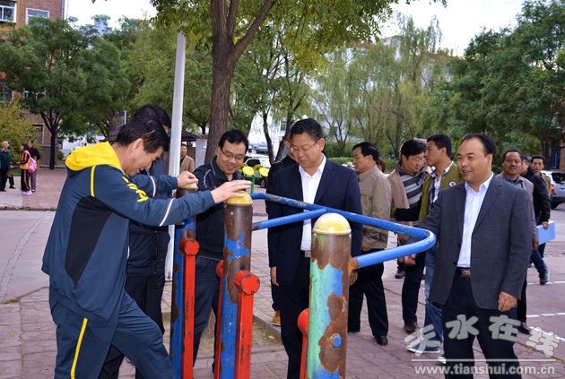 连日来,工作组一行先后赴秦州区、麦积区、清水县、秦安县、武山县,深入各社区体育健身惠民工程现场,通过现场检查器材安装、地基硬化、听取相关部门负责人的现场汇报等形式详细检查了解了我市体育惠民工程实施情况。工作组认为,我市高度重视体育惠民工程实施,政策把握准确,运行机制良好,工程建设标准高、质量好、布局合理,真正把党和政府的体育惠民政策落到了实处。就下一步工作,工作组要求,要加强对建成工程的管理,合理规范设置体育设施标识、服务期限和使用说明;要落实管理维护责任,不定期开展检查维护,确保器材设施完好无损,不留安全隐患,保障群众健身安全。