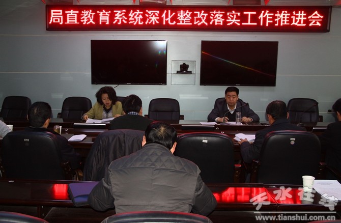 为了贯彻落实市委教育实践活动领导小组工作会议精神,12月1日,天水市教育局召开深化整改落实工作推进会。总结教育实践活动整改落实进展情况,安排深化整改落实和巩固拓展活动成效相关工作。局直各学校主要领导和机关各科室负责人参加了会议。