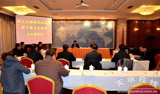 王钧在座谈时表示,设区的市行使地方立法职权,对于天水是一项全新的工作,也是一项综合性课题,法律性、技术性、程序性都很强,天水将按照调研组提出的要求,结合我市实际,进一步扎实做好地方立法权授予各项前期准备工作。