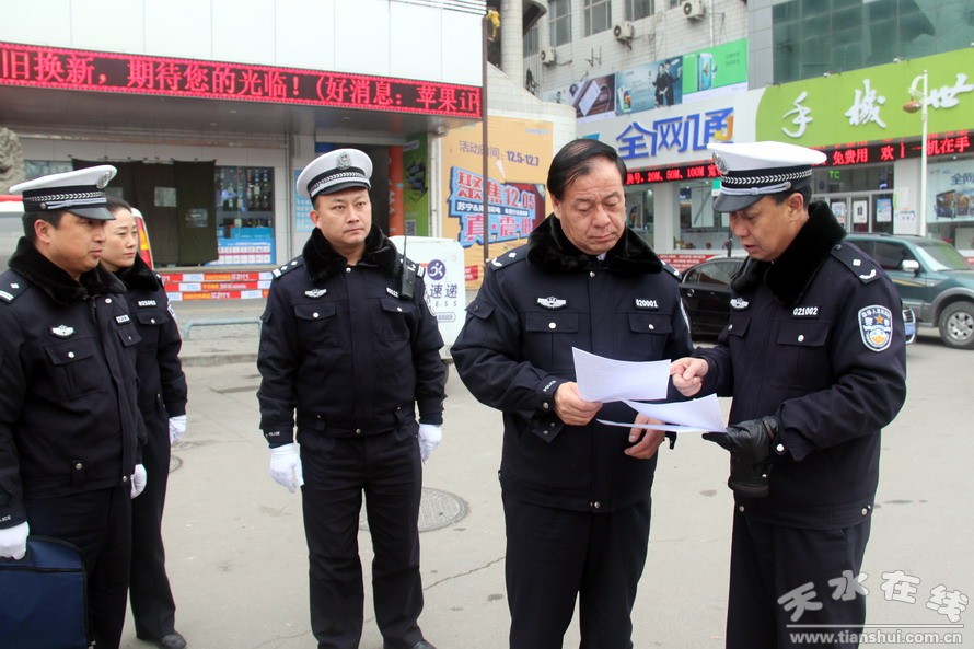 12月11日上午,天水市政府党组成员、市公安局党委书记、局长黄金奎深入市区道路一线,对全市综合整治道路交通秩序活动开展情况进行了集中督导检查。