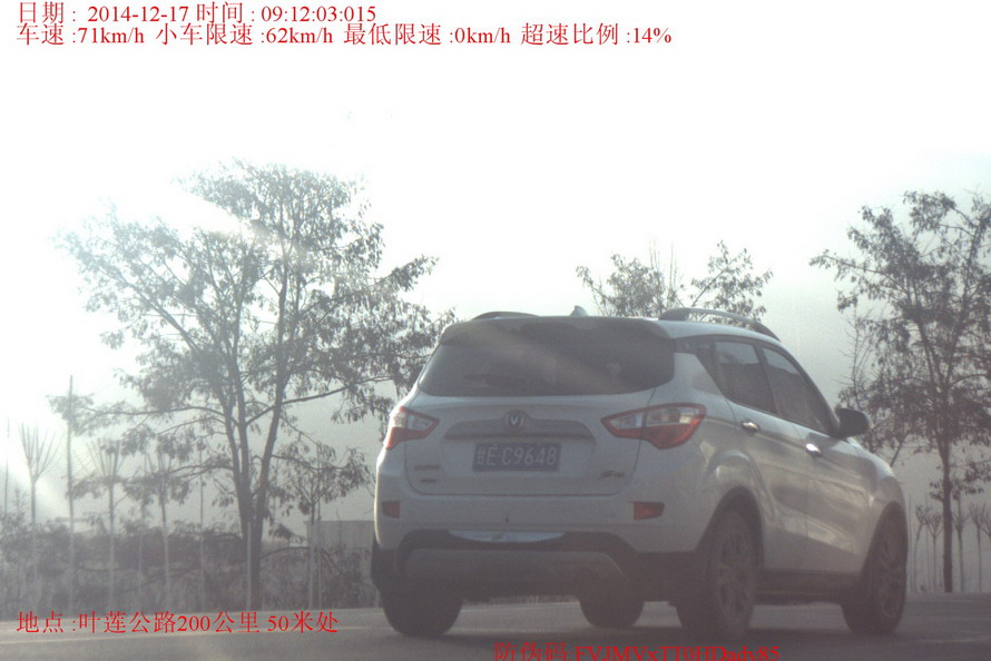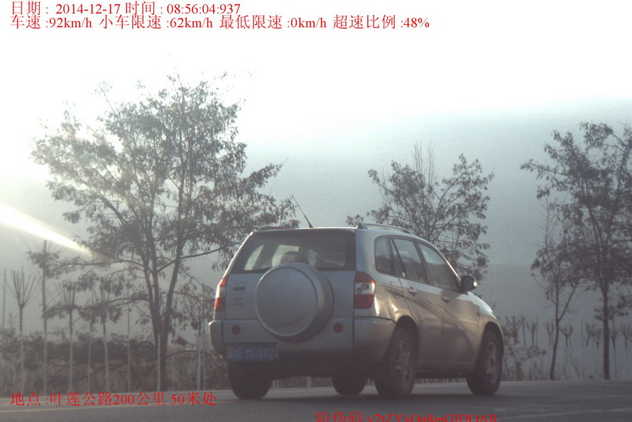 ▲甘EM0392(车辆所有人:盛新文)于2014年12月17日在叶莲公路200km+50m处路段违反机动车超过规定时速的规定,依据《中华人民共和国道路交通安全法》和《甘肃省道路交通安全条例》处200元罚款、记6分。