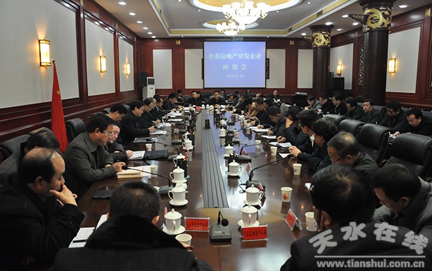 12月19日下午,天水市政府召开全市房地产开发企业座谈会,听取部分房地产企业负责人对我市房地产业发展的意见建议,探讨促进全市房地产业健康发展的措施和办法。市委副书记、市长杨维俊强调,要立足实际,坚定信心,优化环境,破解难题,努力推动全市房地产市场平稳健康发展。