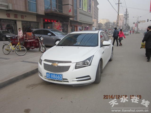 ▲甘EH8660(车辆所有人:吕卫明)于2014年12月18日10时13分在麦积区桥南小商品城违法停放,依据《道路交通安全法》第93条第2款、《甘肃省道路交通安全条例》第82条第10项之规定处100元罚款。 |