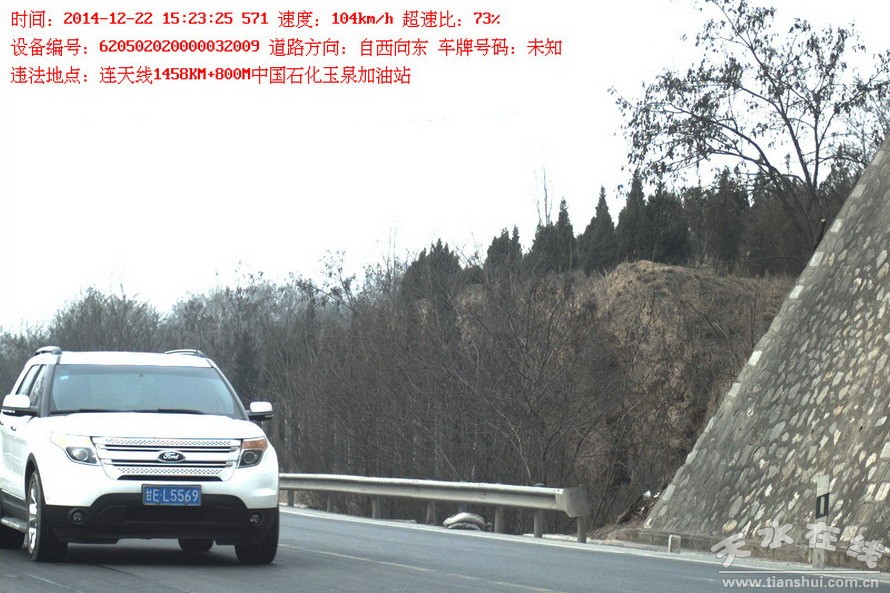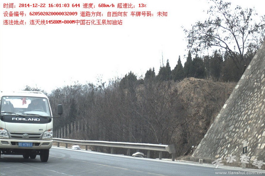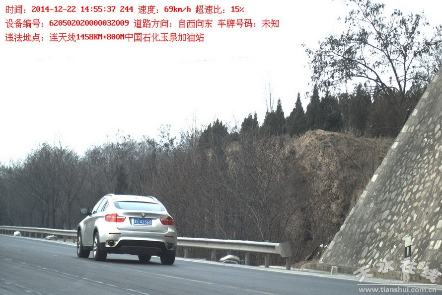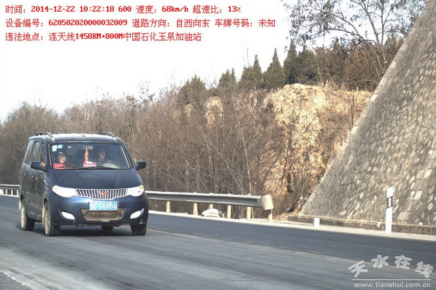 ▲甘EA2368(车辆所有人:李天生)于2014年12月22日14时55分,在310国道天巉公路超速行驶,依据《中华人民共和国道路交通安全法》90条之规定,处以0元罚款,记3分。