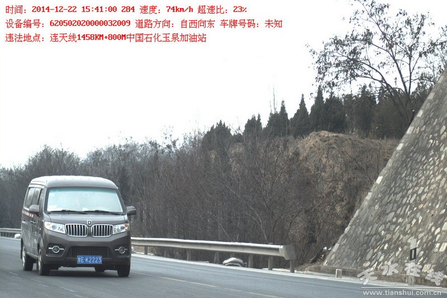▲甘EK2223(车辆所有人:杜建涛)于2014年12月22日15时41分在310国道天巉公路超速行驶,依据《中华人民共和国道路交通安全法》90条之规定,处以200元罚款,记6分。