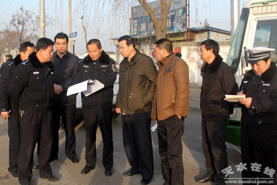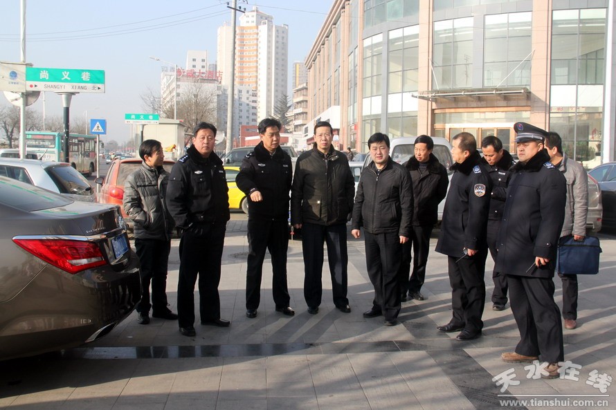 为进一步巩固道路交通秩序综合整治成效,12月31日上午,天水市委副秘书长熊卫三带领市委督查室、市政府督查室、市交警支队、市综合执法局、市交通运管局等相关部门负责同志,先后深入麦积、秦州城区交通乱、堵问题突出的重要路段和重点路口,对贯彻12月8日全市依法综合整治道路交通秩序及乱停乱放工作会议精神,落实12月18日市领导督查两区综合整治道路交通秩序工作指示要求等工作情况进行督导检查。