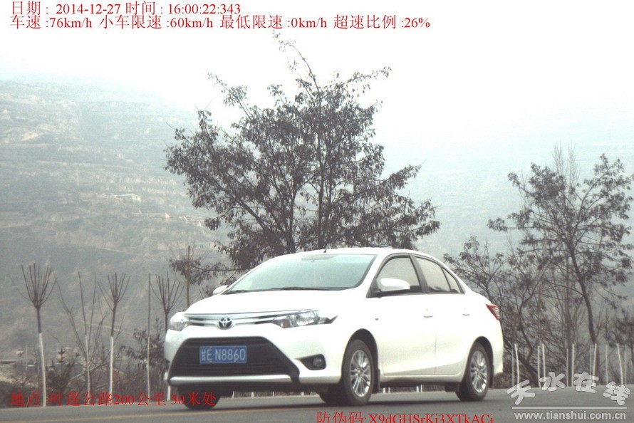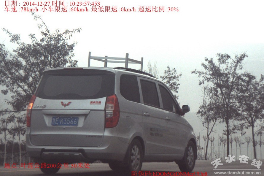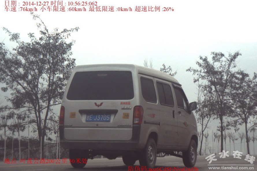 ▲甘EJ3705(车辆所有人:薛江龙)于2014年12月27日在叶莲公路200km+50m处路段违反机动车超过规定时速的规定,依据《中华人民共和国道路交通安全法》和《甘肃省道路交通安全条例》处200元罚款、记6分。