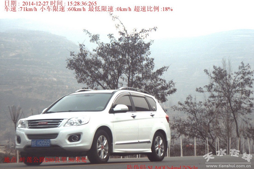 ▲甘EH2055(车辆所有人:金红卫)于2014年12月27日在叶莲公路200km+50m处路段违反机动车超过规定时速的规定,依据《中华人民共和国道路交通安全法》和《甘肃省道路交通安全条例》处警告。