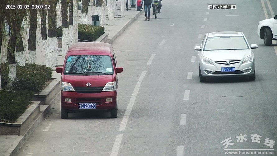 ▲甘E28330(车辆所有人:王建常)于2015年1月3日9时07分在麦积区道南小学门口违法停放,依据《道路交通安全法》第93条第2款、《甘肃省道路交通安全条例》第82条第10项之规定处100元罚款。