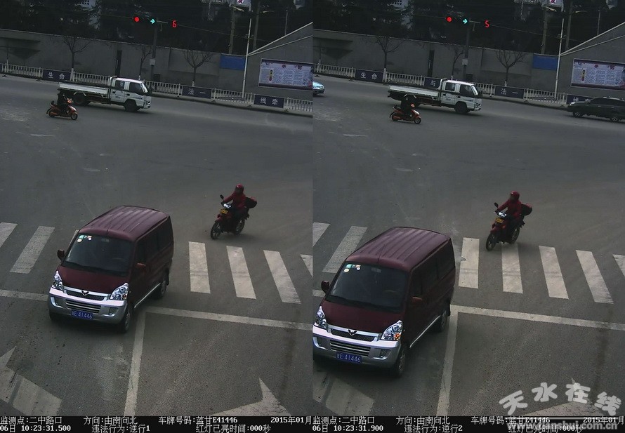 ▲甘E41446(车辆所有人:李勤民)于2015年1月6日10时23分在麦积区二中路口逆行,依据《道路交通安全法》第90条、《甘肃省道路交通安全条例》第82条第1项之规定处200元罚款、记3分。