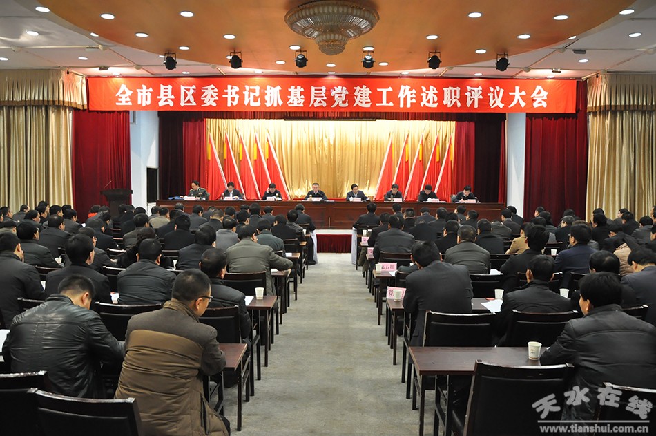 按照中央和省委的统一部署,2月9日上午,中共天水市委召开全市县区委书记抓基层党建工作述职评议大会。市委书记王锐主持大会并强调,要深入学习贯彻习近平总书记关于全面从严治党的重要论述和全省基层党建工作会暨市州党委书记述职评议大会精神,严格落实党要管党、从严治党的责任,不断提高基层党建工作水平,为加快建设富裕文明、幸福美好新天水提供坚强保证。