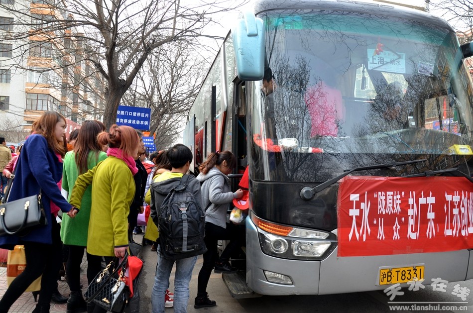 2015年3月2日(农历正月十二日)下午,天水市妇联在市妇女儿童活动中心举行了天水市“陇原妹”劳务输转示范基地揭牌仪式并为赴广东就业创业的200名妇女送行。市人大常委会副主任刘来生、市政协副主席马武生为天水市“陇原妹”劳务输转示范基地揭牌。