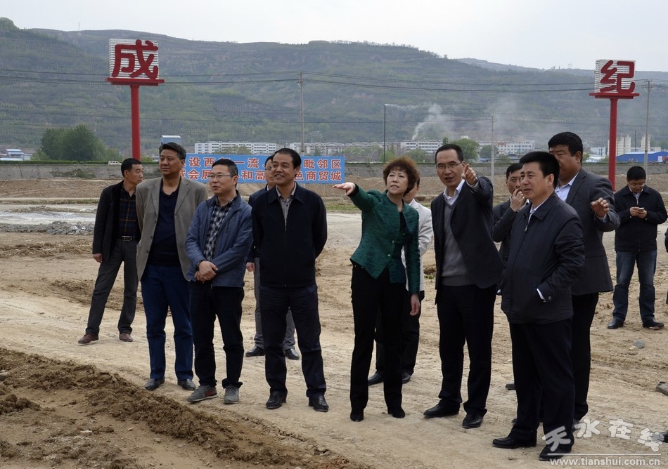 4月23日下午,天水市副市长温利平带领市商务局、市建设局、市国土局、秦州区政府、麦积区政府、市商贸基础设施建设经营有限公司等部门负责人深入天水商贸城建设项目施工现场,督查项目建设情况,现场协调解决天水商贸城建设过程中涉及征地拆迁等有关问题。